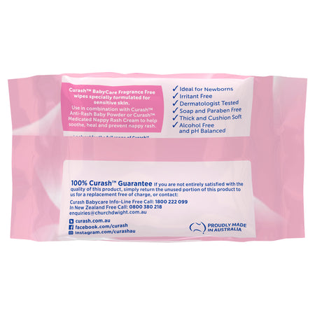 Curash™ Babycare Fragrance Free Baby Wipes are developed with your baby's delicate skin in mind. They are fragrance free and specially formulated baby wipes for sensitive skin.Suitable For: Sensitive Skin