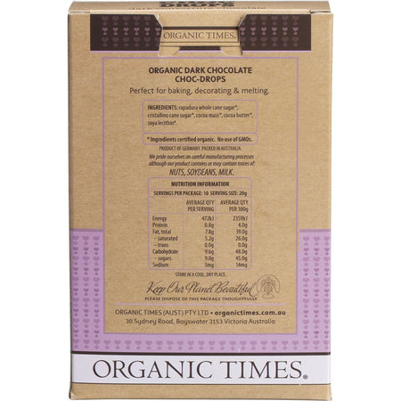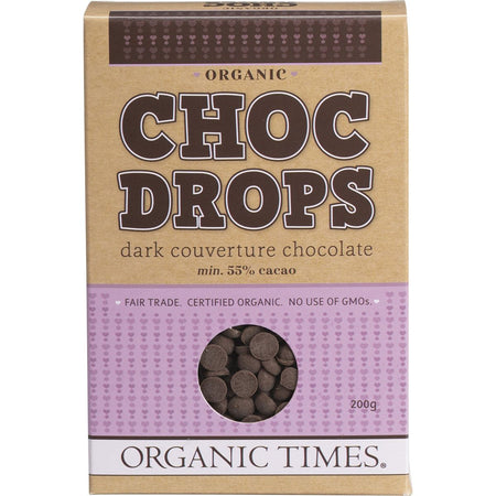 ORGANIC TIMES Dark Chocolate Couvertre Drops 200g