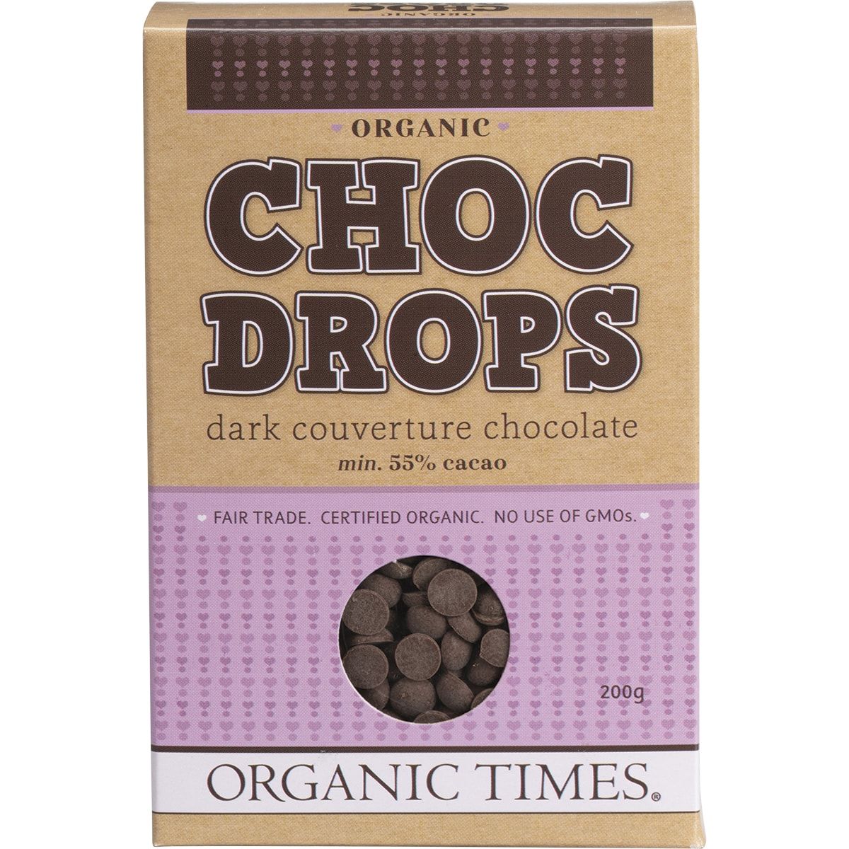 ORGANIC TIMES Choc Drops Dark Couverture Drops 200g