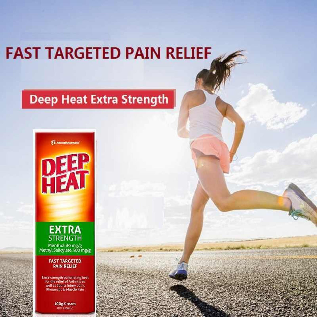 Deep Heat Extra Strength 100g has an extra strength formulation to bring fast, temporary relief from the pain of Arthritis, Rheumatism, Lower Back Pain and Muscular Aches and Strains.
