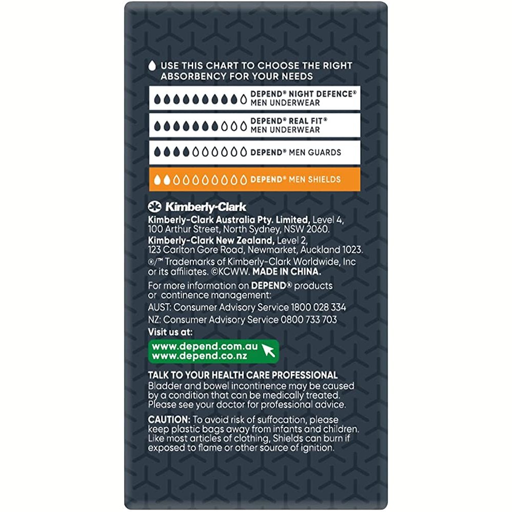 • Depend Shields Incontinence Pads for Men with light absorbency, designed for drips and dribbles