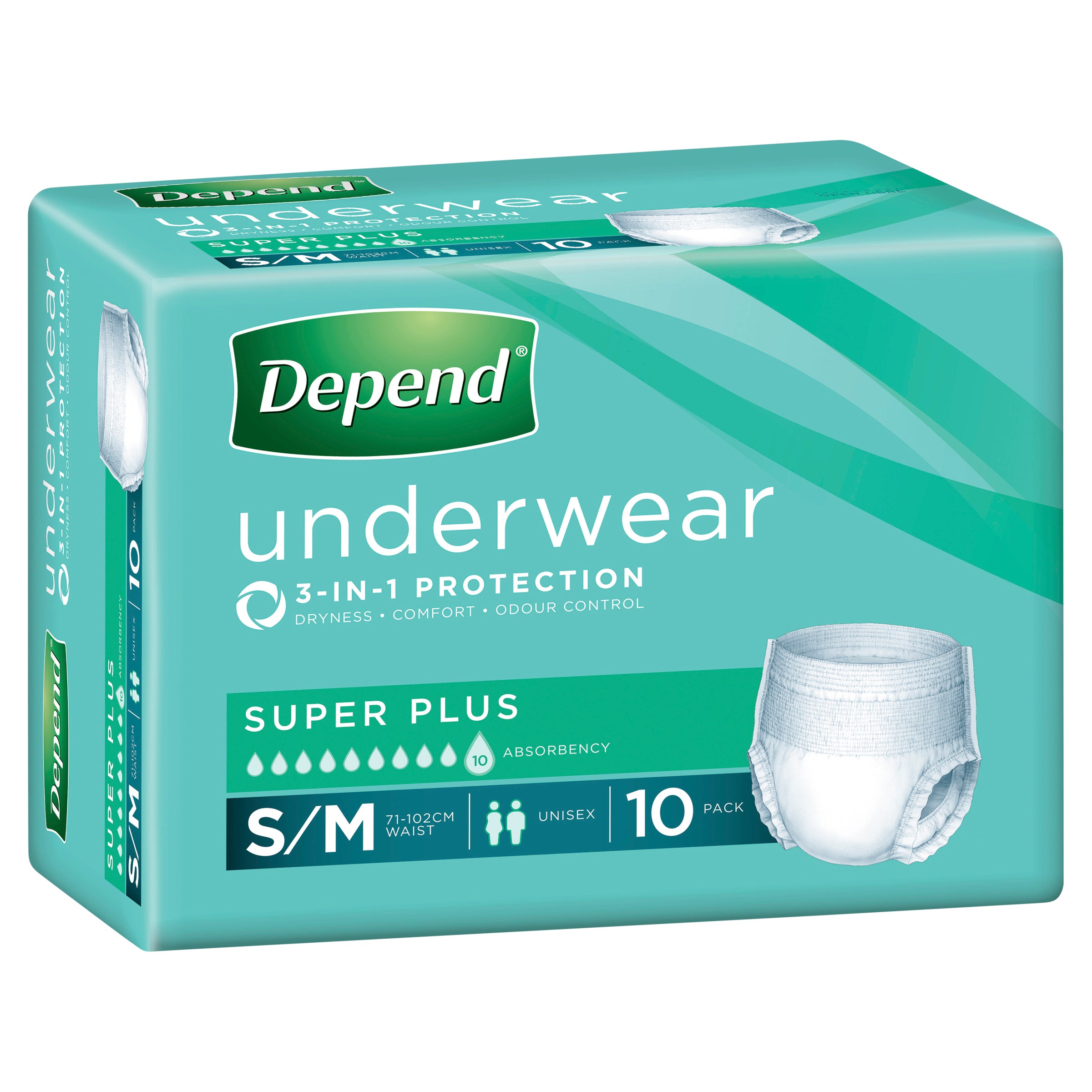 Depend Unisex Underwear Super Plus Small & Medium 10 Pack