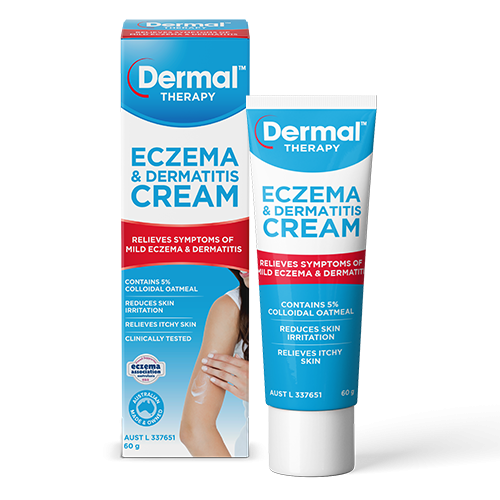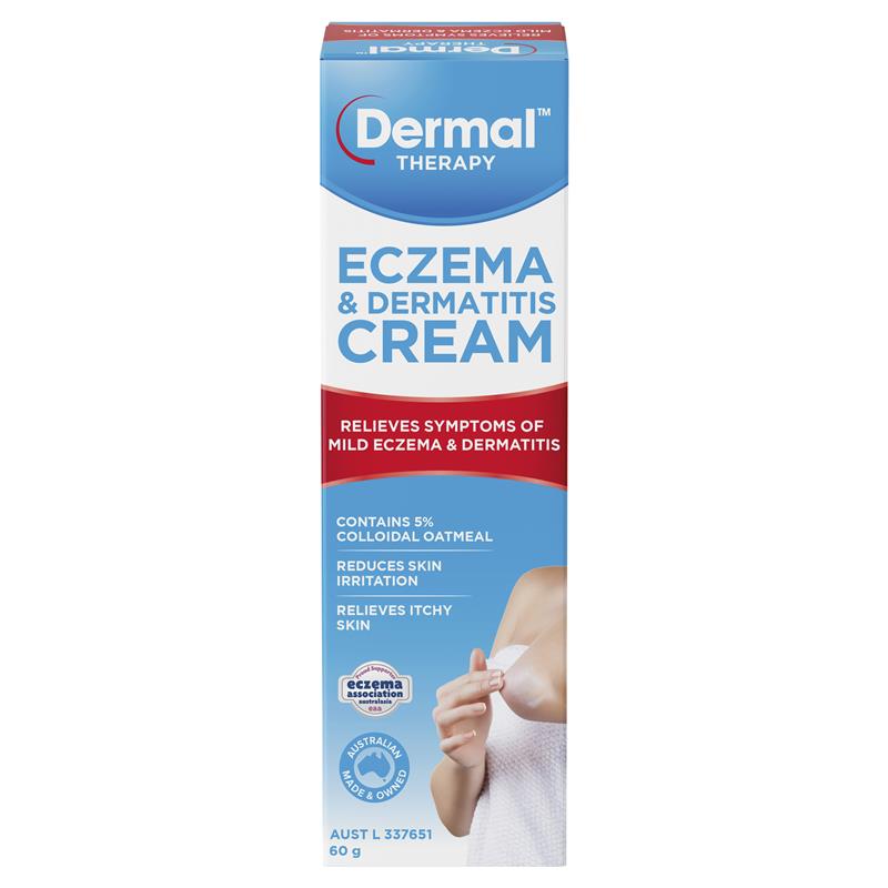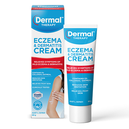Dermal Therapy Eczema & Dermatitis Cream relieves symptoms of mild eczema & dermatitis. Contains 5% colloidal oatmeal, reduces skin irritation and relieves itchy skin.