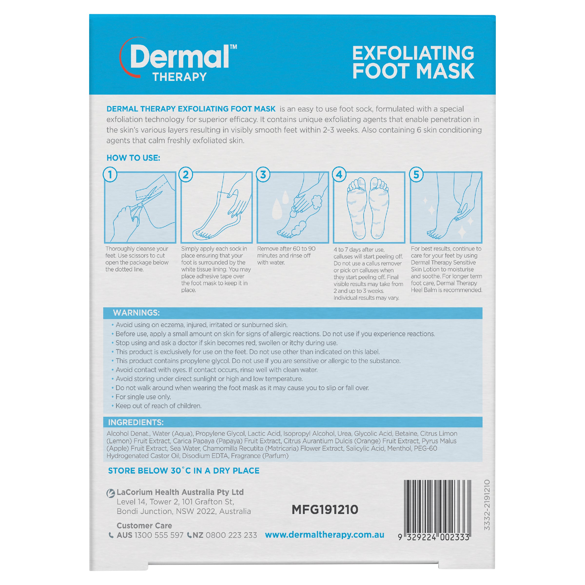 exfoliation technology for superior efficacy. It contains unique exfoliating agents that enable penetration in the skin’s various layers resulting in visibly smooth feet within 2 weeks. Also containing 6 skin conditioning agents that calm freshly exfoliated skin.