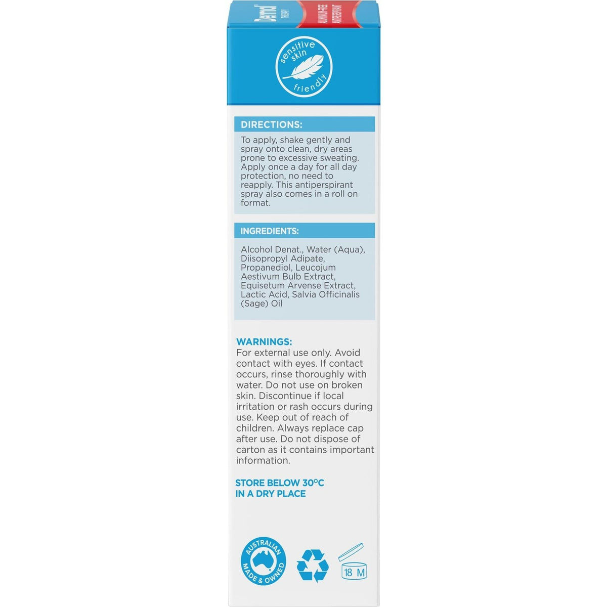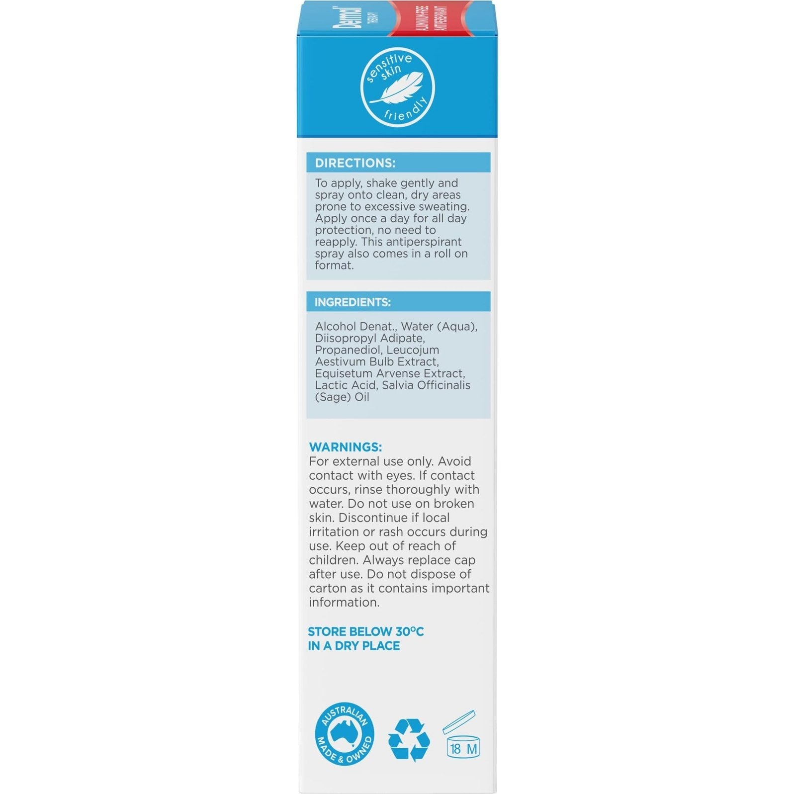 To apply, shake gently and spray onto clean, dry areas prone to excessive sweating. Apply once a day for all-day protection, no need to reapply. This antiperspirant spray also comes in a roll-on format.