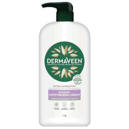 DermaVeen Intensive Extra Hydration Moisturising Cream with shea butter for extra dry, itchy & sensitive skin. Provides intense nourishment, locks in moisture and colloidal oatmeal that soothes & restores skin.