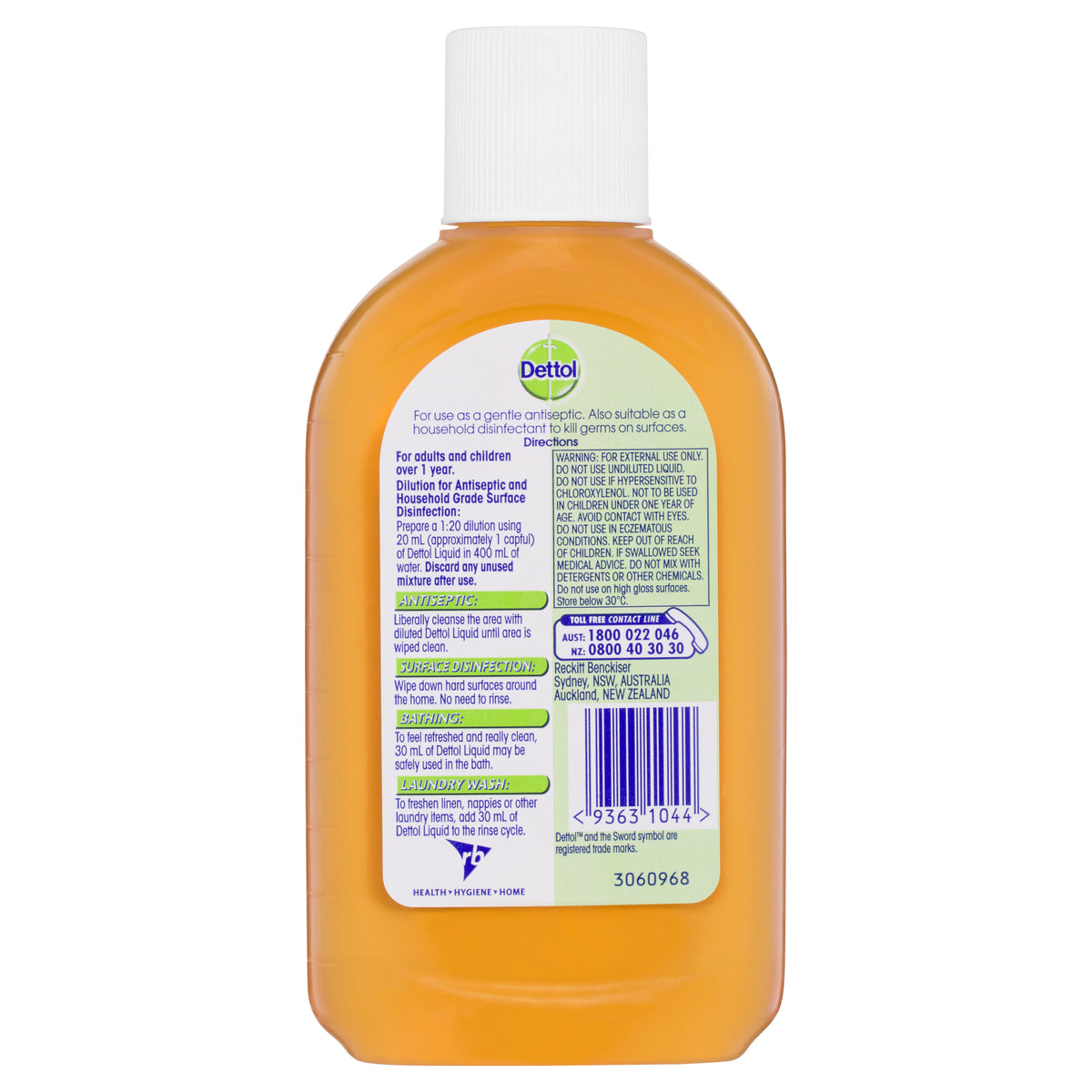 Use Dettol Antiseptic and Disinfectant Liquid to cleanse and help protect against infection from minor skin cuts, scratches and insect bites. You can also use it as a household disinfectant on surfaces, and to freshen linen by adding it to your laundry rinse cycle.