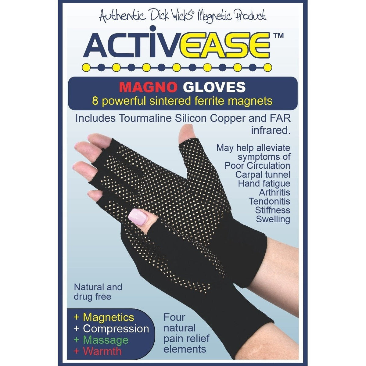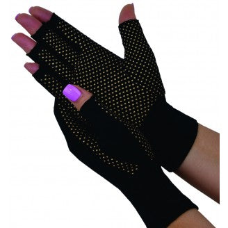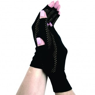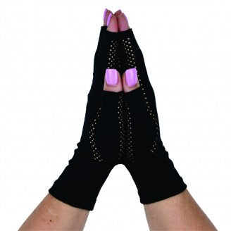Combines four natural pain relief elements of magnetics, compression, warmth, and massage. Includes Tourmaline, Silicon, Copper, and FAR infrared. Super soft compression gloves for improved circulation & assisted relief from arthritis, hand fatigue, pain, swelling & cold hands. Amazing!