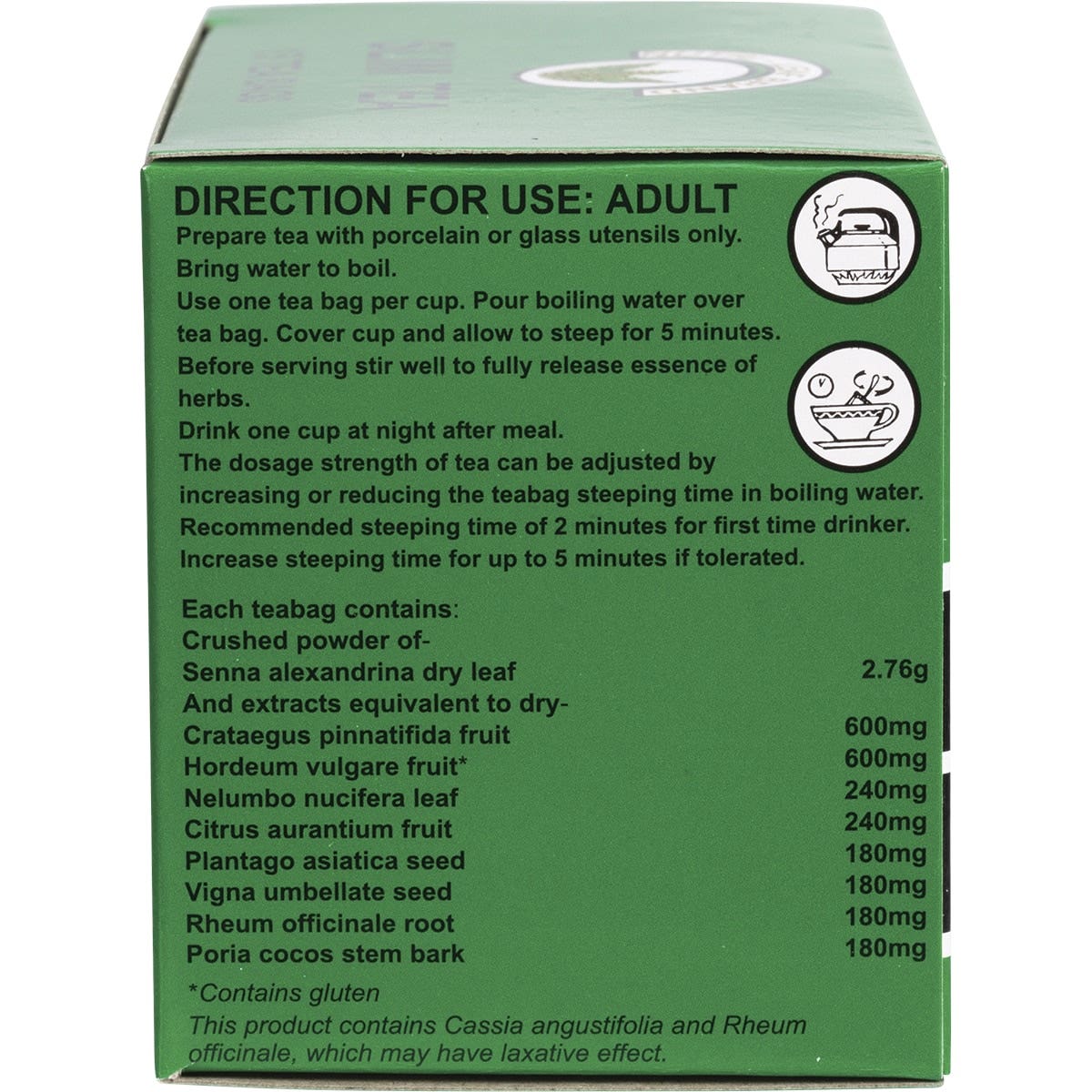 Crushed Powder of Senna Alexandrina 2.76g and Extracts Equivalent to dry - Crataegus Pinnatifida Fruit 600mg, Hordeum Vulgare Fruit* 600mg, Nelumbo Nucifera Leaf 240mg, Citrus Aurantifolia Fruit 240mg, Plantago Asiatica Seed 180mg, Vigna Umbellate Seed 180mg, Rheum Officinale Root 180mg, Poria Cocos Stem Bark 180mg. *Contains Gluten.NH02CPP
