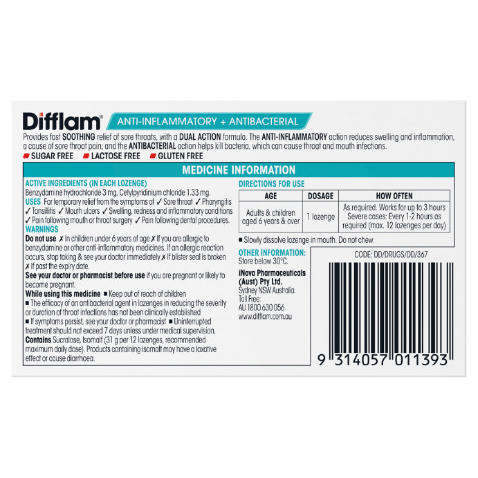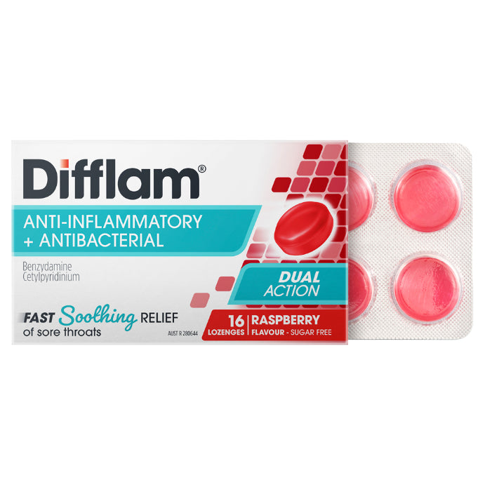 Difflam Sore Throat Lozenges Raspberry Flavour 16 Lozenges
