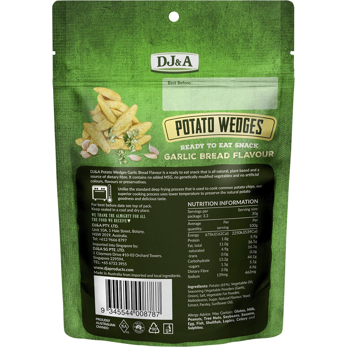 Indulge in the perfect combination of garlic bread and crispy potato wedges with DJ&A's unique Garlic Bread Flavour Potato Wedges. With 9 packs of 100g each, this savory snack is perfect for sharing with friends and family. Made with high-quality ingredients, enjoy the delicious taste without compromising on taste.
