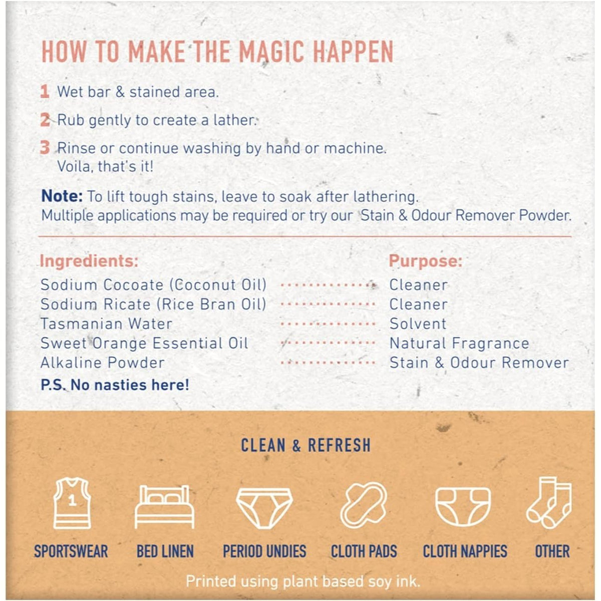 Downunder Wash Co. (Bloody Awesome) Laundry Bar Stain & Odour Remover Sweet Orange 150g