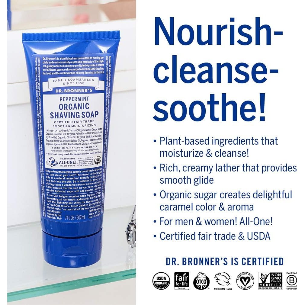 Dr. Bronner's Organic Shaving Soap Peppermint 207ml