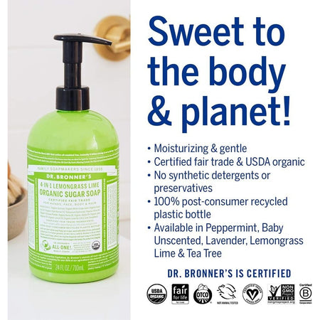 Dr. Bronner's Organic Sugar Soap 4-in-1 Lemongrass Lime (pump) 710ml