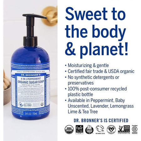 Dr. Bronner's Organic Sugar Soap 4-in-1 Peppermint (pump) 710ml