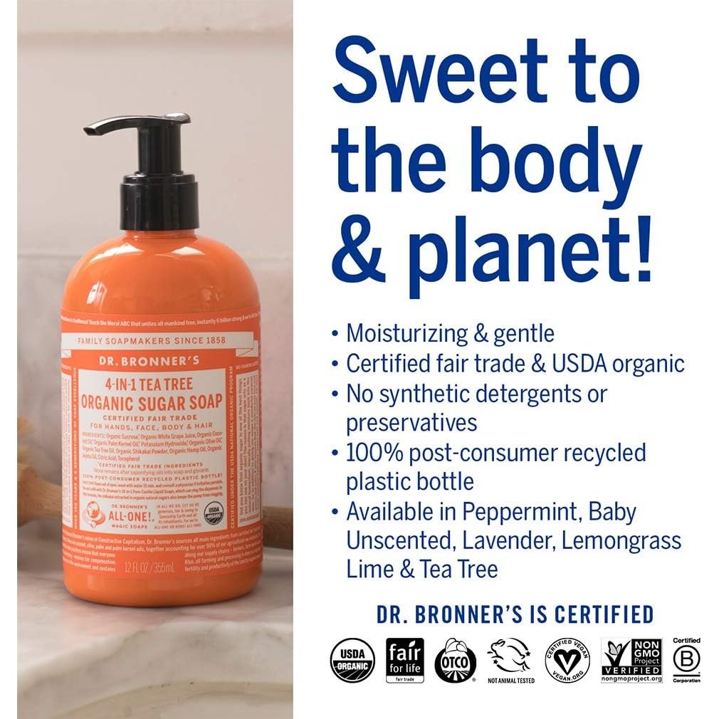 Dr. Bronner's Organic Sugar Soap 4-in-1 Tea Tree (pump) 355ml