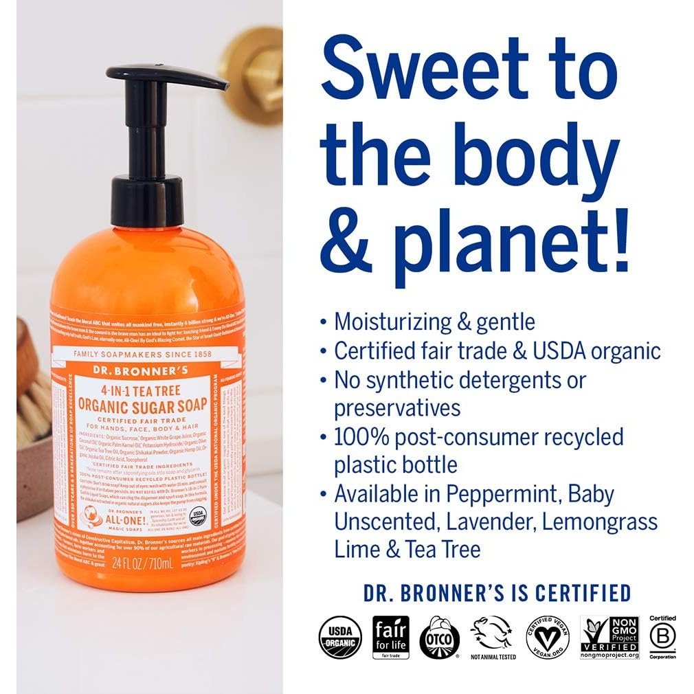 Dr. Bronner's Organic Sugar Soap 4-in-1 Tea Tree (pump) 710ml