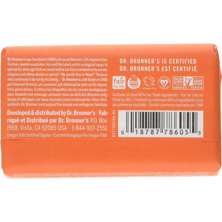 Dr. Bronner’s Bar Soap is made with certified fair trade ingredients and organic hemp oil for a soft, smooth lather that won’t dry your skin. 100% biodegradable in a 100% post-consumer recycled wrapper.