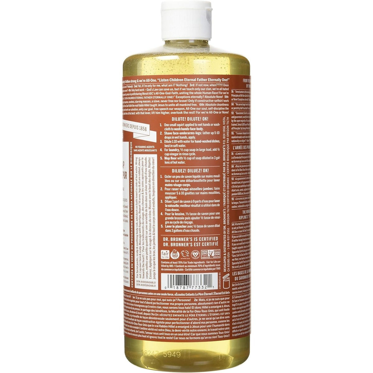Dr. Bronner’s 18-in-1 Pure-Castile Soaps are good for just about any cleaning task. Face, body, hair – food, dishes, laundry, mopping, pets – clean your house and body with no synthetic preservatives, detergents or foaming agents – none!