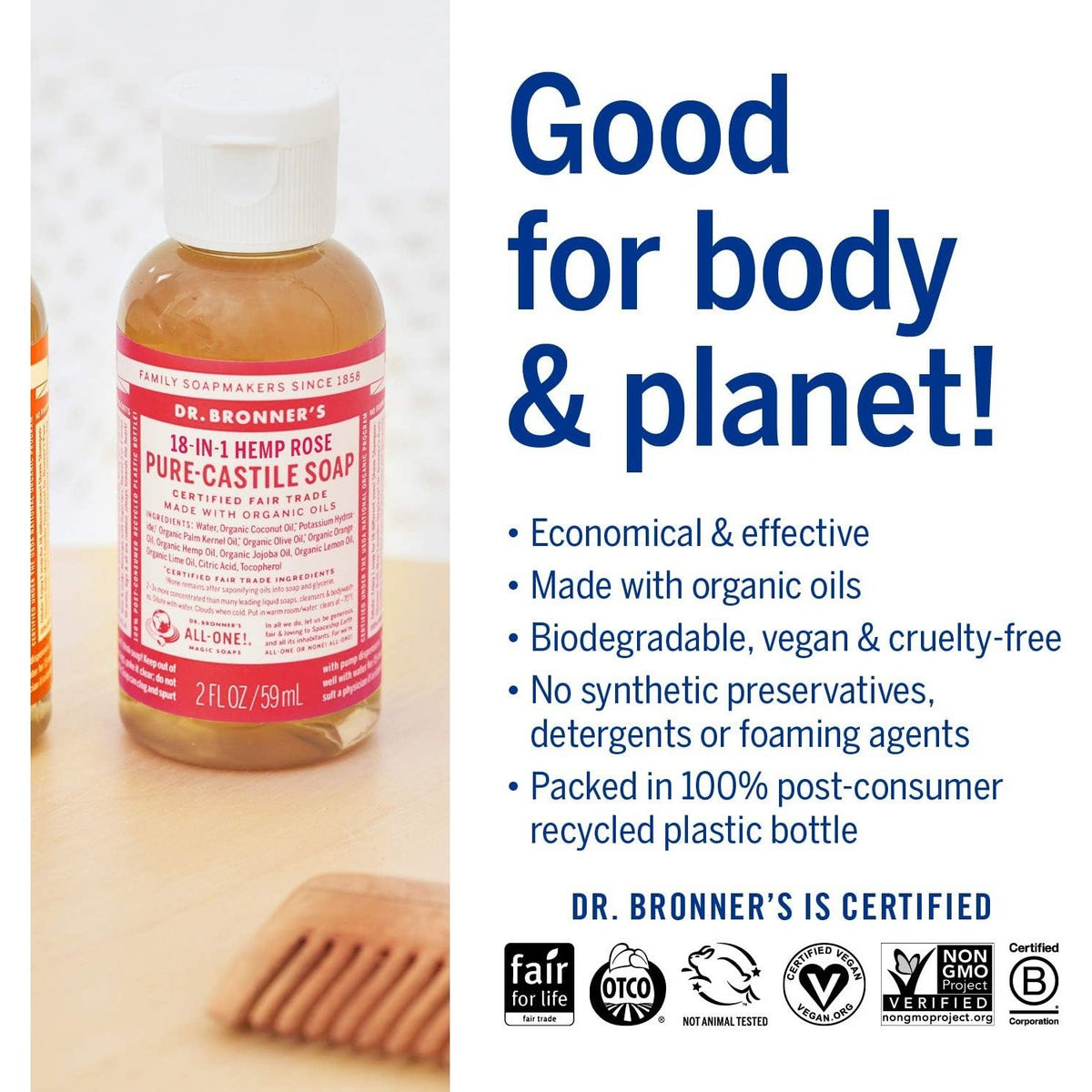 Dr. Bronner's Pure-Castile Soap Liquid (Hemp 18-in-1) Rose 59ml