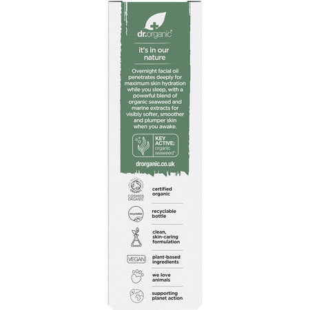 Experience the benefits of this overnight recovery oil from DR ORGANIC. Blended with seaweed, this oil will help moisturize your skin, improve elasticity, and reduce the appearance of wrinkles. Enjoy a revitalized and youthful complexion.