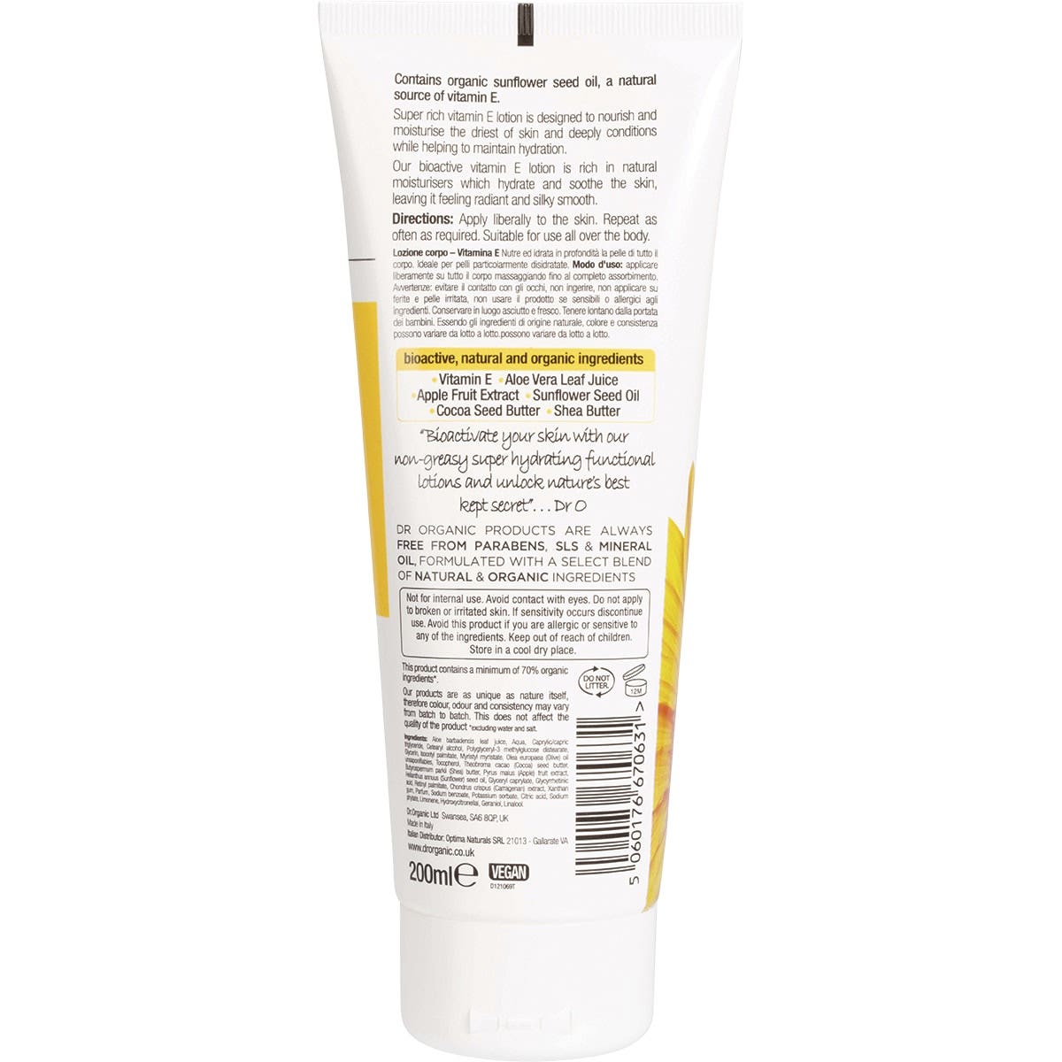 DR ORGANIC Skin Lotion Organic Vitamin E 200ml