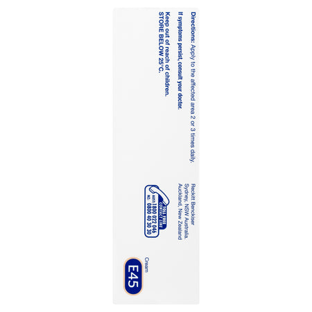 E45 Cream is a rich soothing cream that is unperfumed and non-greasy. This cream relieves dry skin conditions including flaking skin. It also helps soften rough, hard skin on all parts of the body. Cream E45 also reduces skin dryness in conditions such as eczema.