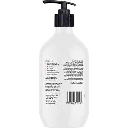 Water (Aqua), Sodium Lauryl Ether Sulfate, Cocamidopropyl Betaine, Sodium Methyl Palmitate Sulfonate, Sodium Sulfate, Caprylyl/Capryl Glucoside, Coco Glucoside, Glyceryl Oleate (Plant Based Surfactants), Betaine (Sugarbeet Extract), Helianthus Annuus (Sunflower) Seed Oil, Tocopheryl Acetate (Vitamin E), Citric Acid (Ph Modifier), Sodium Benzoate, Benzyl Alcohol, Dehydroacetic Acid, Fragrance.