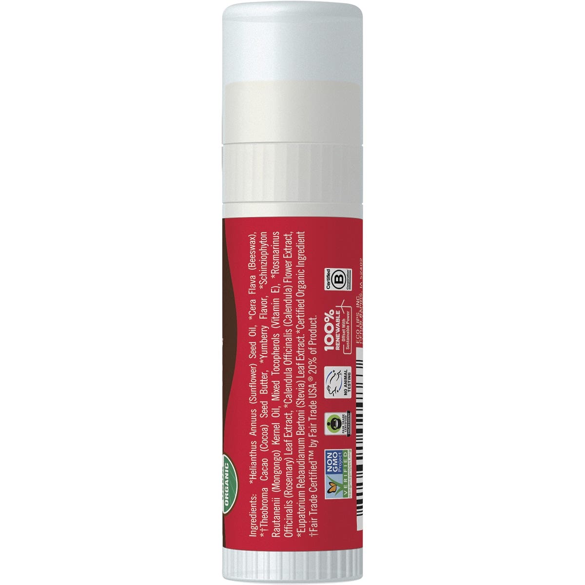 *Helianthus Annuus (Sunflower) Seed Oil, *Cera Flava (Beeswax), *Theobroma Cacao (Cocoa) Seed Butter, *Yumberry Flavour, *Schinziophyton Rautanenii (Mongongo) Kernel Oil, Mixed Tocopherols (Vitamin E), *Rosmarinus Officinalis (Rosemary) Leaf Extract, *Calendula Officinalis (Calendula) Flower Extract, *Eupatorium Rebaudianum Bertoni (Stevia) Leaf Extract. *Certified Organic IngredientsCPP