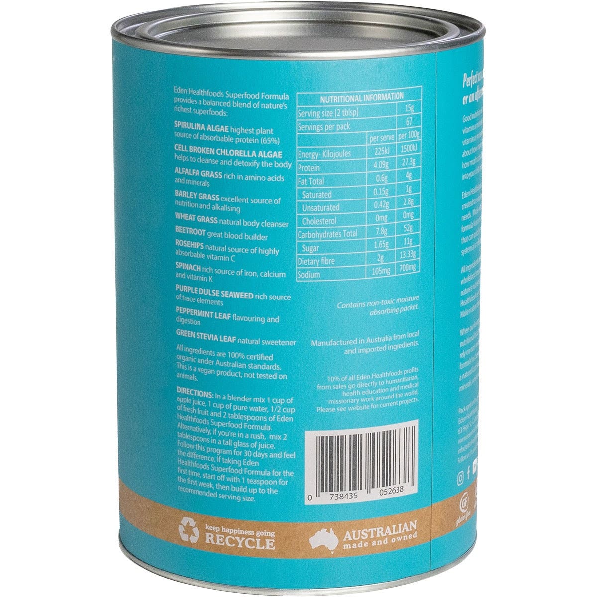 EDEN HEALTHFOODS Superfood Certified Organic Greens Powder 1kg