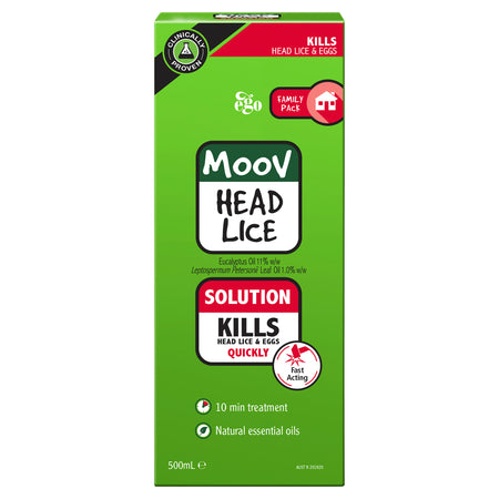 MOOV Head Lice Solution kills both the head lice and their eggs, in just three simple applications. Each application needs to have a gap of seven days between it. Moov head lice solution, is made with a combination of natural essential oil, which impede the biochemical mechanisms of head lice, causing death by poisoning.