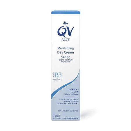 Gently formulated for daily moisturising, QV Face Moisturising Day Cream also offers SPF 30 protection to help buffer your skin against damage and the appearance of premature ageing by the sun’s UV rays.