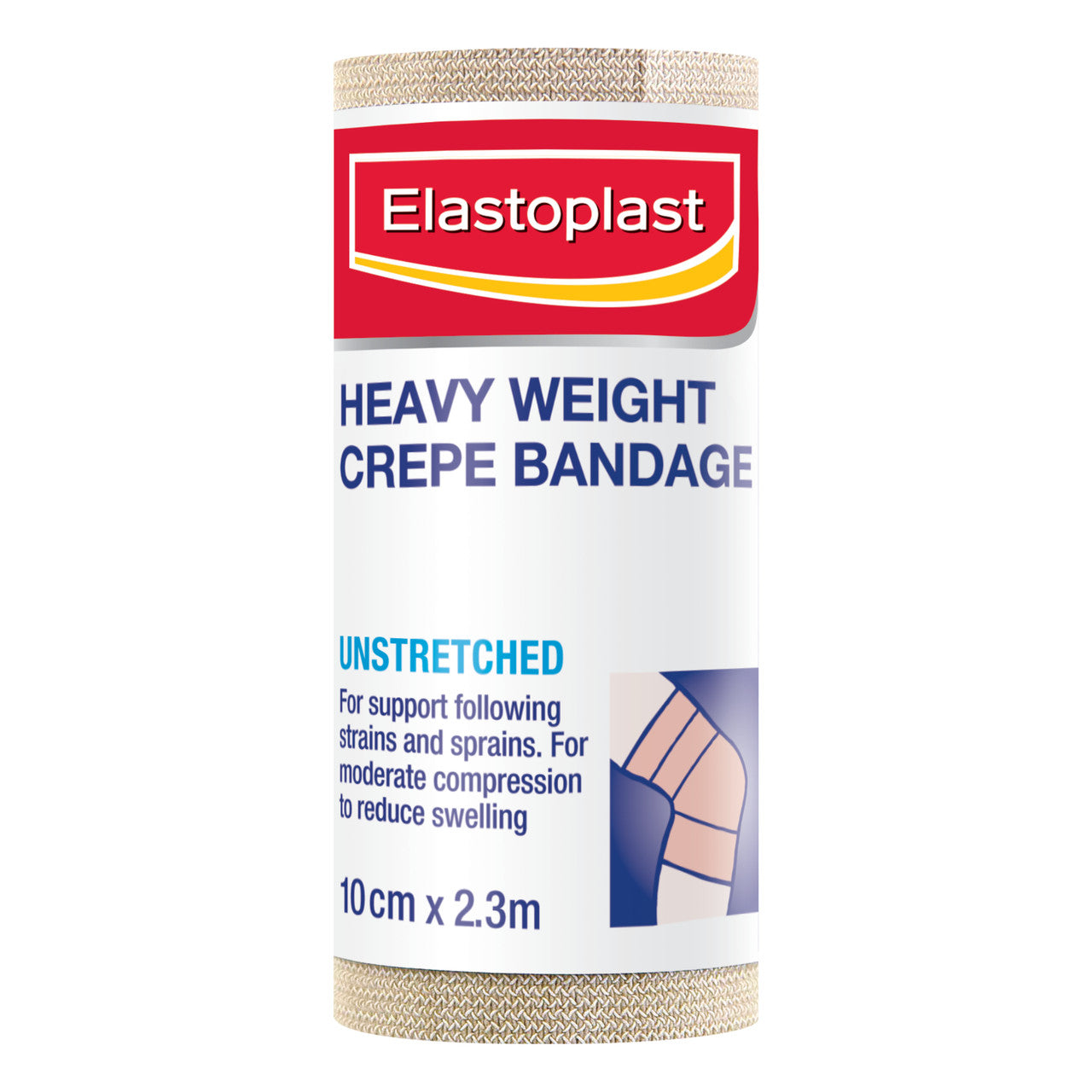 Elastoplast Crepe Bandages are strong support crepes for medium to long-term bandaging requirements. The heavy weight crepe bandage is suitable for use as support for sprains and strains in joints and muscles. It also works as a moderate compression bandage for knee swelling, ankle swelling, and other relevant injuries.