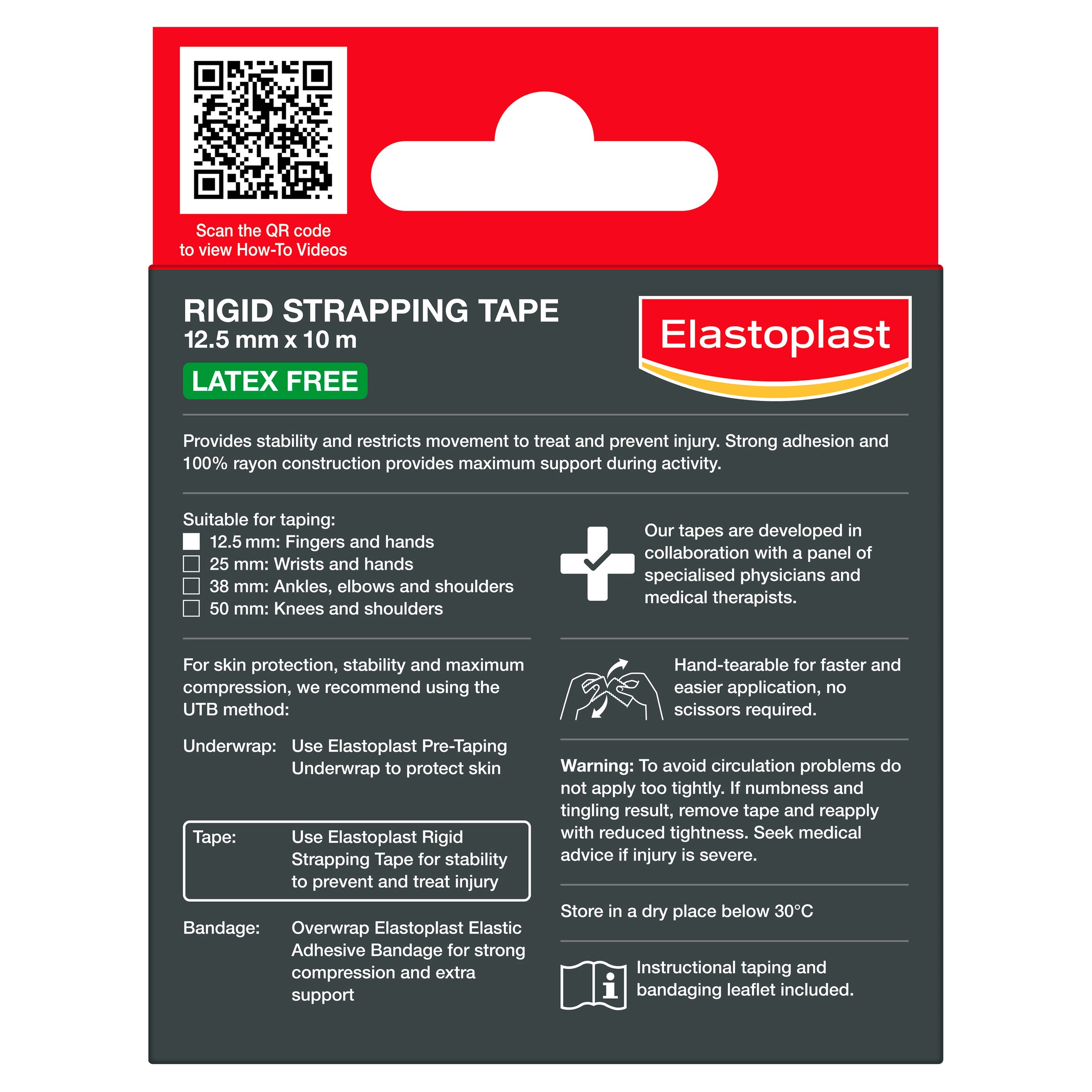 Elastoplast Rigid Strapping Tape is a robust supportive tape that stabilises joints during vigorous physical activity in all conditions. Effective in both preventative and rehabilitation taping techniques.