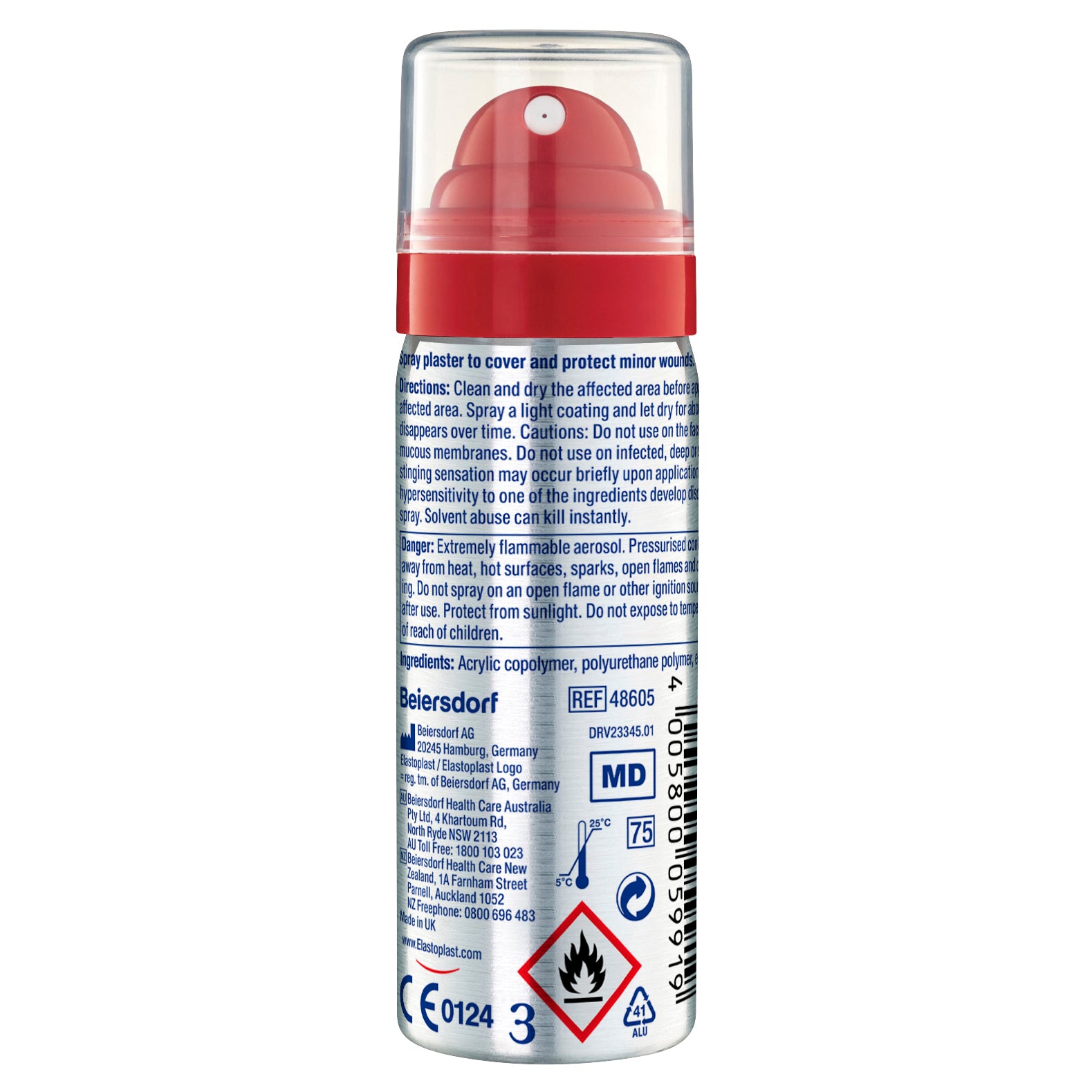Elastoplast Spray Plaster is waterproof & transparent and has instant action against bacteria.