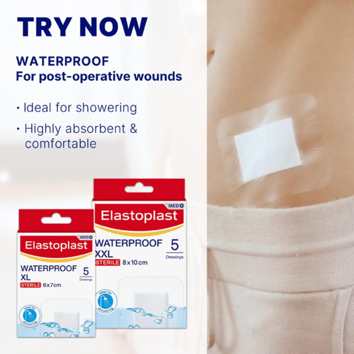 Elastoplast Aqua Protect XXL Sterile Waterproof Dressing protects medium to larger everyday cuts and grazes. They are suitable after minor surgery.