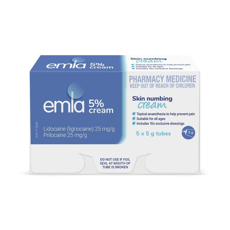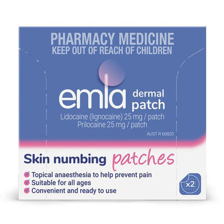 EMLA is available as a cream which is applied then covered with a dressing, or as a patch, which has the cream and dressing already to use.