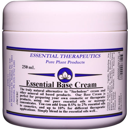 Essential Base Cream is our “general purpose” base cream and is an excellent carrier base for all types of topical applications. Essential Base Cream is very versatile. You can add up to an additional 10% of essential oils, our Therapeutic Massage Concentrates, Skin Synergy Blends or other oily ingredients. All you need to do is to stir in any additional ingredients until fully mixed.