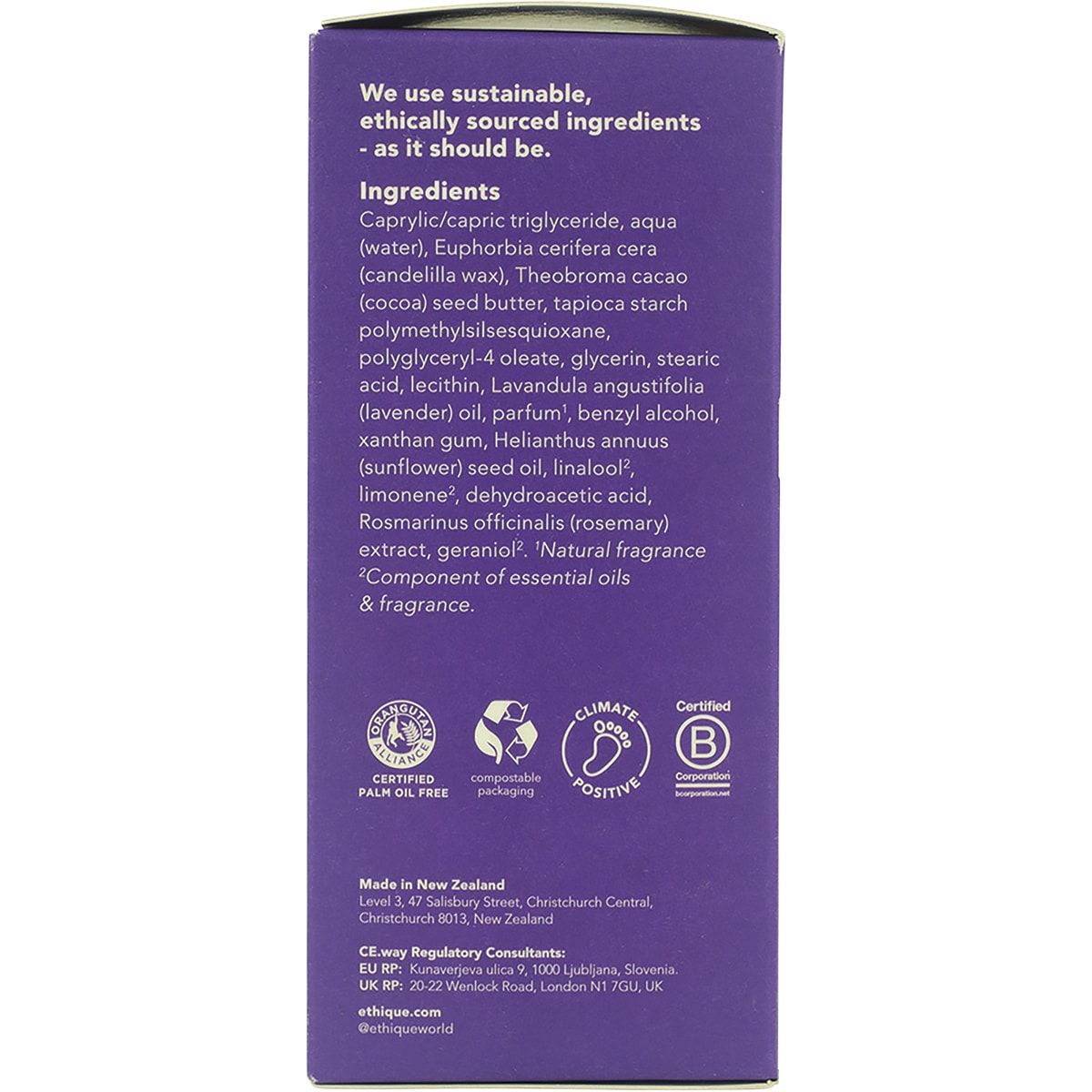 ETHIQUE Solid Body Cream Stick Lavender & Vanilla 100g
