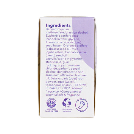 Brassica Alcohol, Behentrimonium Methosulphate, Theobroma Cacao (Cocoa) Seed Butter, Euphorbia Cerifera (Candelilla) Wax, Butyrospermum Parkii (Shea) Butter, Cannabis Sativa (Hemp) Oil, Vegetable Glycerine, Stearic Acid, Guar Hydroxypropyltrimonium Chloride, Citrus Paradisi (Pink Grapefruit) Essential Oil, Parfum^, Benzyl Alcohol, Dehydroacetic Acid, Mica, *Citral, *Limonene, *Linalool. ^Certified Natural Fragrance. *Components Of Essential Oils.ETQ13CPP