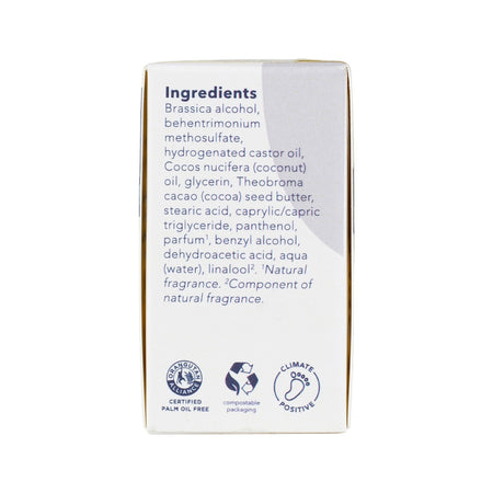 Cetyl Alcohol, Stearyl Alcohol, Behentrimonium Methosulfate, Theobroma Cacao (Cocoa) Seed Butter, Cocos Nucifera (Coconut) Oil, Glycerin, Caprylic/Capric Triglyceride, Fragrance^, Benzyl Alcohol, Panthenol, Dehydroacetic Acid, Aqua (Water), Coumarin*. *Component Of Essential Oil. ^Certified Natural.ETQ10