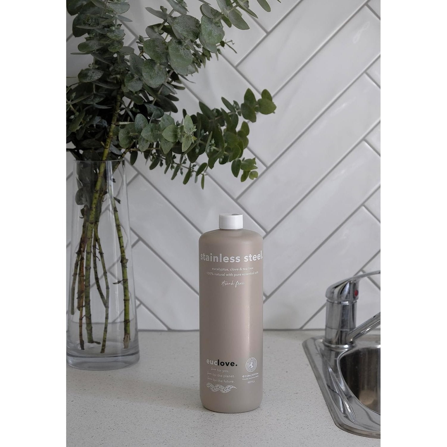 Euclove® Stainless Steel cleaner is a unique formulation of powerful pure essential oils that leaves a clean, streak-free finish on all your Stainless-Steel appliances and surfaces. All of our essential oils are 100% pure, 100% natural and sourced from the best that Australia and India have to offer. Our Stainless-Steel product has the beautiful Australian blue gum eucalyptus that has its own natural antibacterial and antiseptic properties. Our pure essential oil-based formulations give your surfaces a unique, fresh, clean fragrance that will leave them smelling great and naturally clean. Easily removes dirt, stains & tough grime. Euclove® is anti-mould, anti-bacterial, anti-septic and fights insects at the same time. It is 100% safe to use and free of harsh chemicals like Ammonia, D-Limonene, Bleach, Artificial Fragrance, Dyes & Colours, Sodium Lauryl-Laureth Sulphate (SLS), Parabens and Propylene Glycol that are typically found in chemical cleaning products.