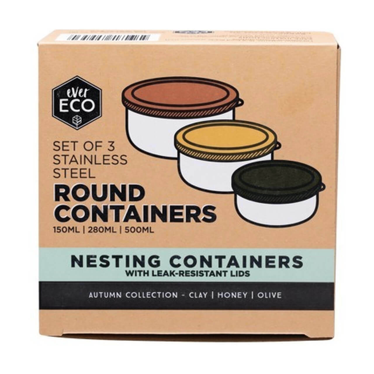 EVER ECO Stainless Steel Round Containers Autumn Collection - Leak Resistant - 3PM66CPP