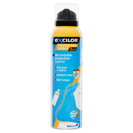 Excilor 3-in-1 Protector Spray is the first and only protector spray against warts, athlete's foot and nail fungus. Always read the label. Follow the directions for use. If symptoms persist, talk to your health professional.