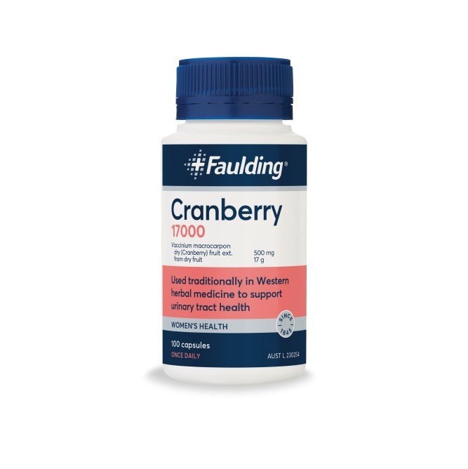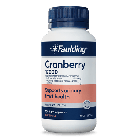 Faulding® Remedies Cranberry 17000 supports and maintains the health of the urinary tract and bladder. Cranberry is traditionally used in herbal medicine to reduce the incidence of mild urinary tract infections. Cranberry contains antioxidants, which protects the body from the damaging effects of free radicals. Faulding® Remedies Cranberry 17000 assist in the maintenance of general wellbeing and provides urinary tract support.