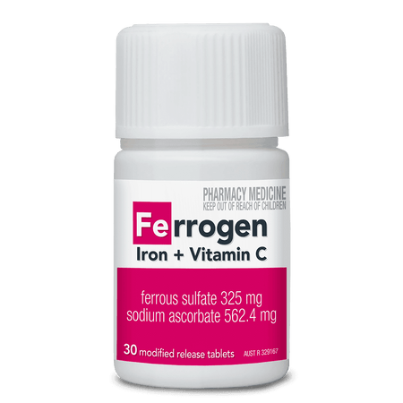 Ferrogen is an Iron supplement with a high concentration of Iron. The tablet also contains added vitamin C to help with the absorption of Iron. Ferrogen was designed to help treat medically diagnosed Iron deficiency.