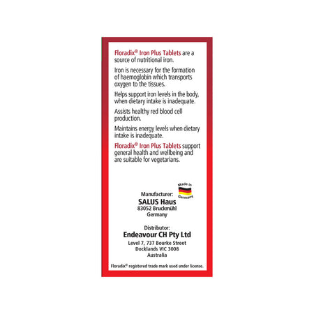 To maximise the iron absorption, take Floradix tablets on an empty stomach, approx. 30 minutes or more before a meal or 2 hours after.