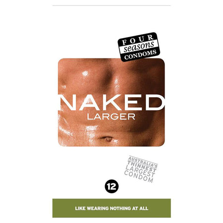 The Naked Larger Condom by Four Seasons is made with a wider diameter for that bigger fit. Experience the sheer yet strong sensation of the largest, ultra-thin condom in Australia. You won't believe you're wearing a condom at all.