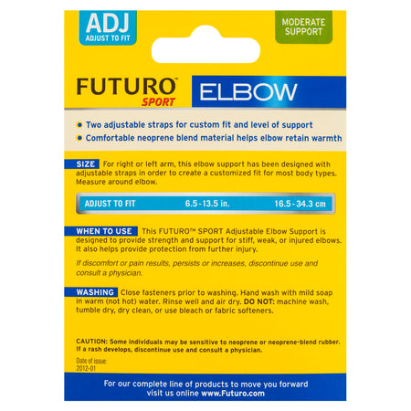 Take your game to the next level. The FUTURO Sport Adjustable Elbow Support is designed to help add support to elbows and keep you in the game. And by adding support, it helps protect your elbow, so you can play tomorrow as well. Now you're ready for the pros!
