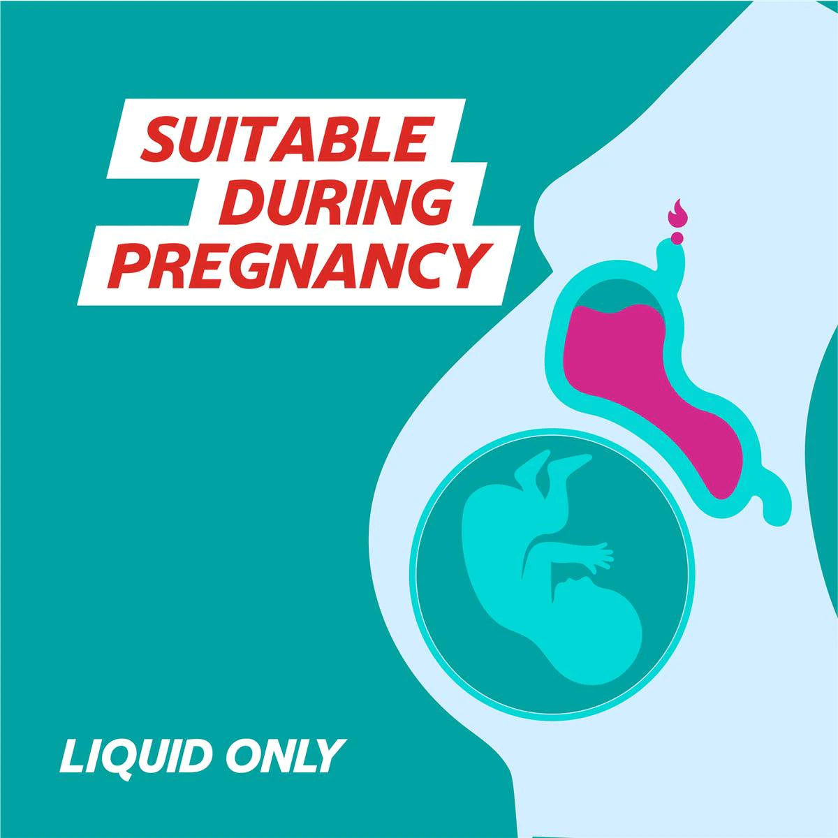 It contains double the concentration of sodium alginate compared with Gaviscon Original so you only need to take half as much. Suitable for use whilst pregnant or breastfeeding.